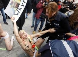 Οι FEMEN ξαναχτύπησαν. Αυτή τη φορά έβγαλαν τα ρούχα τους και διαμαρτυρήθηκαν γυμνές στην πλατεία μπροστά στην Αγία Σοφία στην Κωνσταντινούπολη... Οι τέσσερις ακτιβίστριες από την Ουκρανία, με αφορμή την Γιορτή της Γυναίκας, στις 8 Μαρτίου, σκέφτηκαν αυτό τον τρόπο για να διαμαρτυρηθούν. Οι Ουκρανές ούρλιαζαν και φώναζαν συνθήματα υπέρ των γυναικών και στα πρόσωπά τους είχαν μακιγιάζ «αίματος», για να καταγγείλουν τη βία κατά των γυναικών στην Τουρκία. Η τουρκική αστυνομία, όμως, τις συνέλαβε αμέσως και τις οδήγησε για ανάκριση.