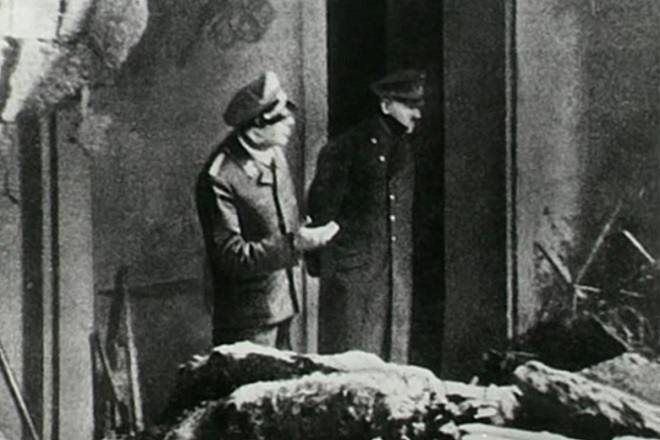 Λίγο πριν αυτοκτονήσει στο υπόγειο του Führerbunker, ο Χίτλερ βγήκε έξω με έναν αξιωματικό των SS για να ερευνήσουν τις ζημιές που προκλήθηκαν από τη βόμβα των συμμαχικών δυνάμεων.