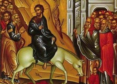 Ο Χριστός εισέρχεται στα Ιεροσόλυμα «επί πώλον όνου». Πορεύεται και οι Ισραηλίτες τον υποδέχονται με τιμές ως Βασιλιά. Εκείνος δεν δίνει ιδιαίτερη σημασία στις τιμές, δεν περιορίζεται στο πανηγύρι, στην πρόσκαιρη δόξα, αλλά προχωρεί στο σταυρό και την Ανάσταση.