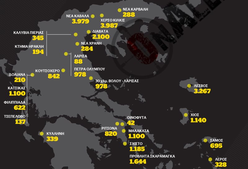 Χάρτης - Οι πρόσφυγες που διαμένουν σε χώρους των ΕΔ