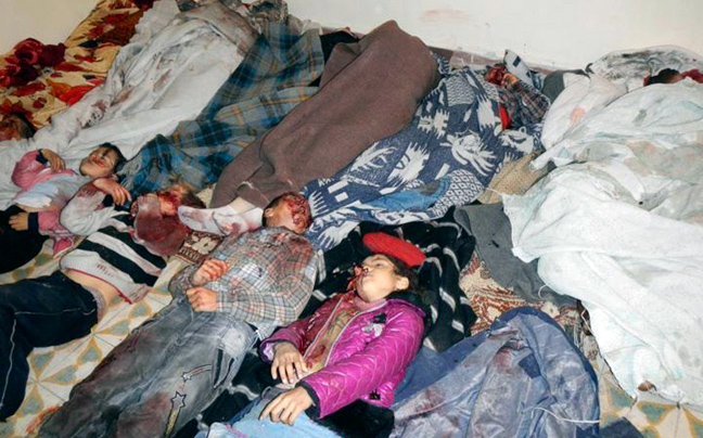 «Τα πτώματα ανήκουν σε 28 παιδιά και 23 γυναίκες και 6 άνδρες. Βρέθηκαν στις συνοικίες Καρμ αλ-Ζειτούν και Αλ-Ανταουίγε. Ορισμένα έχουν ίχνη βασανισμών, ορισμένοι κάηκαν ζωντανοί, άλλοι σφαγιάστηκαν με μαχαίρια», σύμφωνα με τον ακτιβιστή Ομαρ Χόμσι.