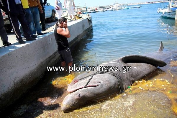 Έναν “Προσκυνητή” γνωστό και ως Σαπουνά ή Παππά, αλίευσαν ψαράδες από το Πλωμάρι σήμερα το πρωί. Πρόκειται για ένα άκακο καρχαριοδειδές το οποίο ήταν μήκους 7,4 μέτρων και βάση υπολογισμών από έμπειρους