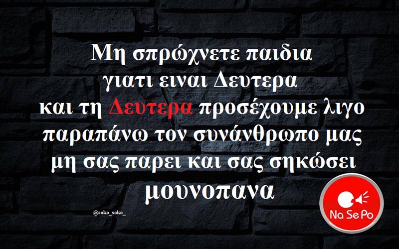 Μη σπρώχνετε παιδια γιατι ειναι Δευτερα