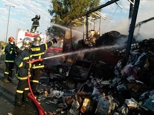Σύμφωνα με τo nooz, η νταλίκα μετέφερε μπύρες και για άγνωστη αιτία στο ύψος του κόμβου της Σούρπης, ανετράπη και πήρε φωτιά.