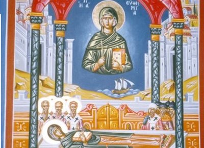 Να σημειώσουμε ότι η κυρίως μνήμη του μαρτυρίου της αγίας Ευφημίας τελείται στις 16 Σεπτεμβρίου.