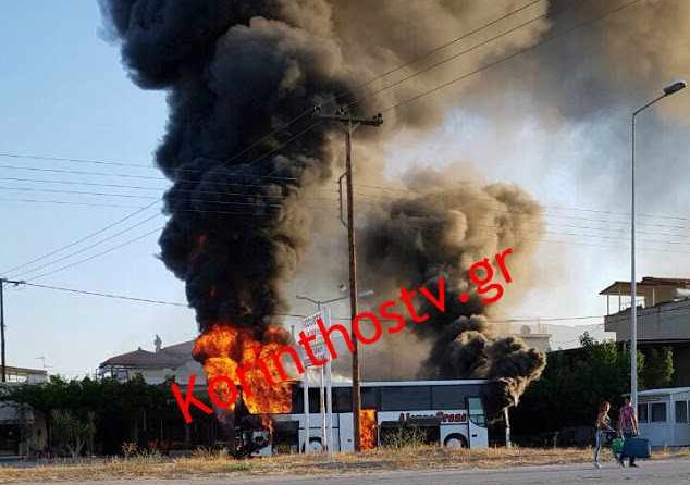 Πανικός στην Κόρινθο! Λεωφορείο εν κινήσει κάηκε ολοσχερώς