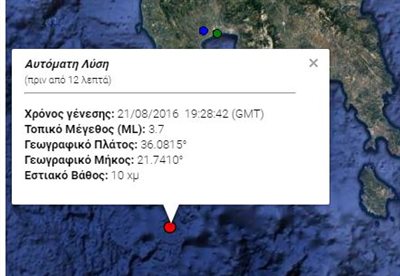 Σεισμική δόνηση σημειώθηκε πριν από λίγο στον υποθαλάσσιο χώρο νοτιοδυτικά της Καλαμάτας.