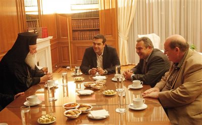 Ολοκληρώθηκε λίγο πριν τις 9:30 το βράδυ η συνάντηση του πρωθυπουργού με τον αρχιεπίσκοπο Αθηνών και Πάσης Ελλάδος Ιερώνυμο στο Μέγαρο Μαξίμου.