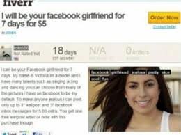 «Θα γίνω το κορίτσι σου στο Facebook για 10 μέρες για 5 δολάρια», αναφέρει η αγγελία μια κοπέλας στην ιστοσελίδα Fiverr, όπου διάφοροι άνθρωποι προσφέρουν υπηρεσίες για 5 δολάρια.