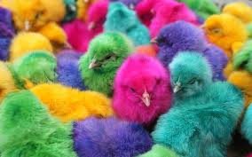 Η τρέλα των Αμερικανών για τις γιορτές είναι γνωστή. Αλλά αυτή τη φόρα ίσως το παραέκαναν. Το πασχαλινό έθιμο του βαψίματος αυγών σε διάφορα χρώματα κρατάει εδώ και αιώνες, αλλά αυτή τη φορά το πήγαν ένα βήμα παραπάνω... Σε πολλές πολιτείες των ΗΠΑ κυκλοφορούν μικρά κοτοπουλάκια βαμμένα σε διάφορα νέον χρώματα – κίτρινο, ροζ, πράσινο κ.α., γεγονός που έχει σοκάρει. Η βαφή μπαίνει ως εμβόλιο στο εκκολαπτόμενο αυγό ή ψεκάζεται όταν το κοτοπουλάκι εκκολάπτεται. Περίπου οι μισές πολιτείες έχουν νόμους που απαγορεύουν τέτοιες πρακτικές, αλλά αυτά τα ταλαίπωρα ζωάκια κυκλοφορούν ακόμα. Φυσικά αυτό έχει προκαλέσει την οργή των φιλοζωικών οργανώσεων. Αν και το χρώμα δεν είναι μόνιμο και η βαφή μη-τοξική, οι ειδικοί λένε ότι η υγεία του ζώου δεν επηρεάζεται. Παρ’ όλα αυτά, η «διαστρέβλωση» της φυσικολογικής εικόνας του ζώου για σκοπούς κερδοσκοπίας ενοχλεί πολύ κόσμο.  ofono