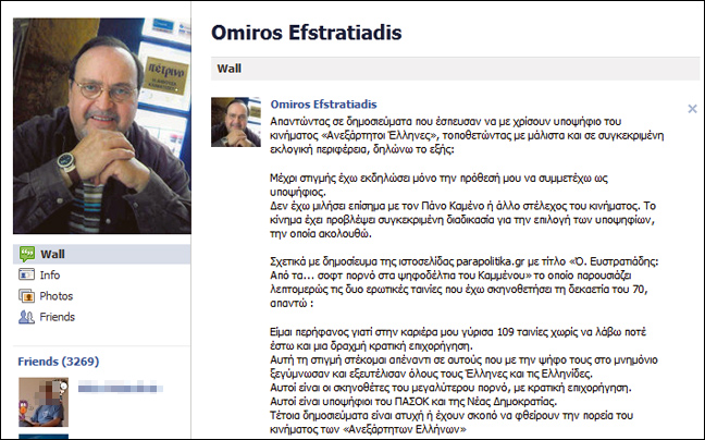 Σε νέα του ανάρτηση στη σελίδα του στο facebook, ο κ. Ευστρατιάδης διευκρίνισε πως δεν έχει μιλήσει επίσημα με τον κ. Καμμένο και πως το κίνημα «Ανεξάρτητοι Έλληνες» διαθέτει συγκεκριμένη διαδικασία για την επιλογή των υποψηφίων την οποία και ο ίδιος ακολουθεί.