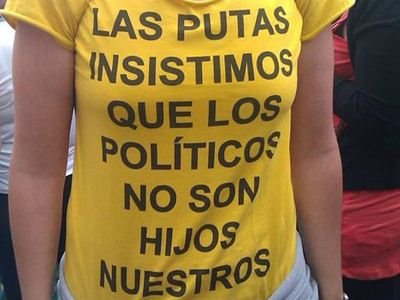 Μάλιστα, σε όλες τις διαδηλώσεις που πραγματοποιούνται από τον Ιανουάριο στην Ισπανία οι ιερόδουλες συμμετέχουν σε αυτές, φορώντας το παρακάτω t-shirt στο οποίο αναγράφεται: «Οι ιερόδουλες επιμένουμε πως οι πολιτικοί δεν είναι οι γιοι μας».