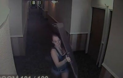 Εντάξει, όλοι έχουμε φύγει από κάποιο ξενοδοχείο παίρνοντας μαζί μας ένα… «αναμνηστικό». Ένα σαμπουάν, ένα σαπούνι, το μπλοκ αλληλογραφίας και το στυλό. Αλλά η γυναίκα της φωτογραφίες πραγματικά ανέβασε πολύ τον πήχη της «αφαίρεσης». Οι κάμερες παρακολούθησης του ξενοδοχείου την κατέγραψαν να αφαιρεί αντικείμενα αξίας 700 δολαρίων (!) από το ξενοδοχείο Sabal Suites στη Φλόριντα: πίνακες, τον κάδο των απορριμμάτων, το κάλυμμα του κρεβατιού και άλλα πολλά.