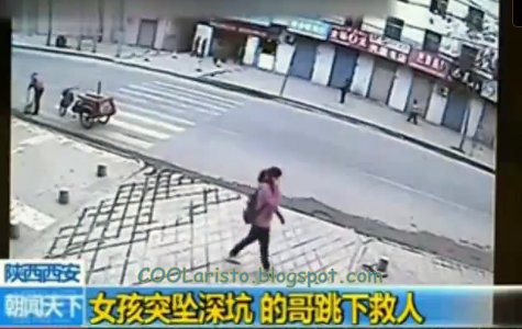 Κάμερα ασφαλείας καταστήματος κατέγραψε πεζή να εξαφανίζεται από την εικόνα πέφτοντας σε μία πρόχειρα κλεισμένη τρύπα, βάθους εφτά μέτρων. Ευτυχώς την γυναίκα είδε διερχόμενος οδηγός ταξί ο οποίος κάλεσε την πυροσβεστική προς βοήθεια. Όπως θα δείτε στο βίντεο που ακολουθεί η κοπέλα ανασύρθηκε από το συνεργείο διάσωσης σώα και αβλαβής...