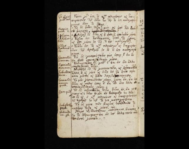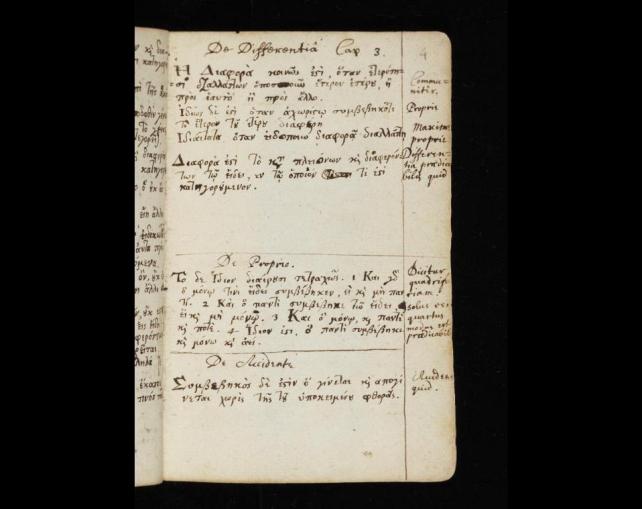 Αυτό που έχει ωστόσο ενδιαφέρον από το συγκεκριμένο σημειωματάριο είναι ότι ο αναγνώστης θα συναντήσει από την 7η σελίδα και έπειτα γραφή… ελληνική! Πώς συνέβη αυτό; Απλούστατα ο φημισμένος επιστήμονας είχε αντιγράψει αποσπάσματα από το έργο του Αριστοτέλη για τη Λογική, «Όργανον» το οποίο και μελετούσε κάνοντας και σχετικές υποσημειώσεις στο περιθώριο της σελίδας.
