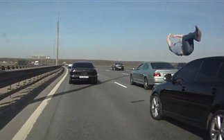 Το περιστατικό συνέβη σε αυτοκινητόδρομο της Ρωσίας, όταν ένας οδηγός δε σταμάτησε όπως έκανε ένας άλλος μπροστά του και χτύπησε τον άνδρα, ο οποίος προσγειώθηκε άτσαλα λίγα μέτρα μπροστά στην άσφαλτο. newsbeast