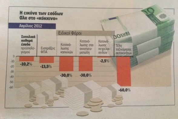 Σύμφωνα με πληροφορίες, τις πρώτες μέρες του Μαΐου καταγράφηκε σημαντική μείωση των εσόδων στις εφορίες που υπερβαίνει το 10% σε σύγκριση με το 2011. Όπως λένε αρμόδια στελέχη του υπουργείου Οικονομικών, ενώ πέρυσι τις πρώτες μέρες του Μαϊου οι ημερήσιες εισπράξεις των ΔΟΥ ήταν 40 εκατ. ευρώ, φέτος έπεσαν στα 35 εκατ. ευρώ και από τη Δευτέρα, την επόμενη των εκλογών, ο ρυθμός μειώθηκε ακόμη περισσότερο.