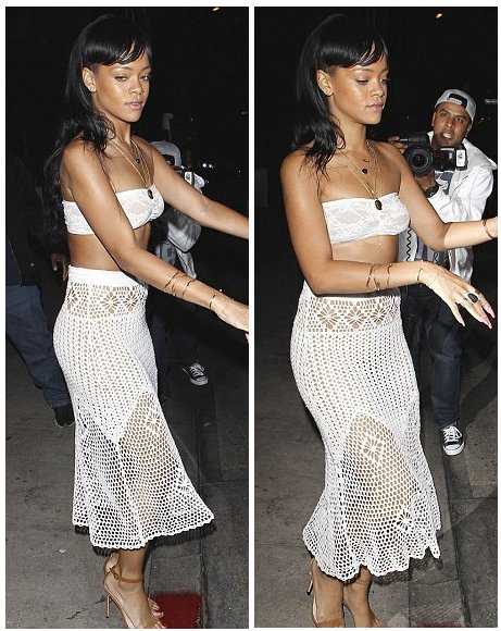 Η Ριάνα δεν κάθισε και πολύ να σκεφτεί τι θα φορέσει για να πάει για φαγητό. Για την ακρίβεια, δεν φόρεσε καν μπλούζα, αλλά βγήκε έξω με ένα άσπρο δαντελένιο σουτιέν το οποίο συνδύασε και με μία λευκή φούστα με αραιή πλέξη, κάνοντας πολλούς να αναρωτιούνται αν φοράει εσώρουχο.