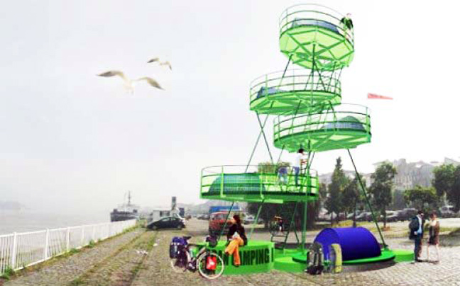 Το «Vertical Urban Camping» είναι στην ουσία για μια κάθετη μεταλλική δομή με «ορόφους», η οποία μπορεί να τοποθετηθεί οπουδήποτε, επιτρέποντας στους κατασκηνωτές να στήσουν τη σκηνή τους τη μία επάνω από την άλλη.