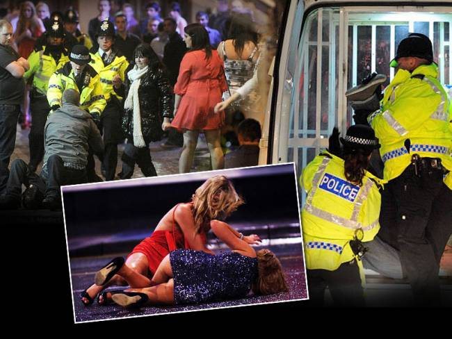 Ο λόγος για τους Βρετανούς μπεκρήδες, οι οποίοι πλημμύρισαν τα κέντρα των μεγάλων πόλεων της Βρετανίας, για να καλωσορίσουν, υποτίθεται, το 2012.Οι πρώτες βοήθειες δέχθηκαν χθες το βράδυ μέσα σε μια ώρα περισσότερες από 600 κλήσεις, προκειμένου να παράσχουν τις πρώτες βοήθειες σε μεθυσμένους. Αξίζει να σημειωθεί πως πρόκειται για τρομακτικό νούμερο, αφού οι κλήσεις για παροχή βοήθειας τριπλασιάστηκαν σε σχέση με μια συνηθισμένη μέρα. Οι πρώτες βοήθειες από τις 04:00 το πρωί δέχτηκαν συνολικά 2.333 κλήσεις, ενώ αστυνομικές αρχές ανέφεραν πως έγιναν και 77 συλλήψεις καθώς οι δρόμοι μετατράπηκαν σε αρένες. Δείτε φωτογραφίες από τους δρόμους της ντροπής