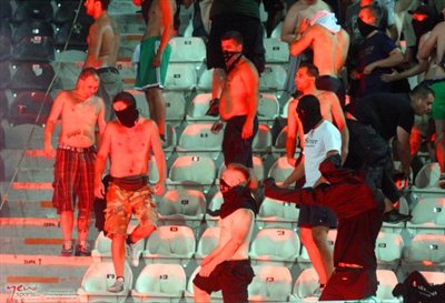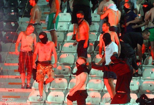Οι κατηγορούμενοι, πέντε Αυστριακοί, ένας Πολωνός κι ένας Κροάτης, συνελήφθησαν στη διάρκεια και μετά το τέλος του αγώνα, κατά την αποχώρησή τους από τις κερκίδες της Τούμπας. Στην κατοχή τους βρέθηκαν, κατά περίπτωση φωτοβολίδες, κροτίδες, καψύλλια, εκτοξευτήρες φωτοβολίδων και μία μάσκα φουλ-φεϊς.