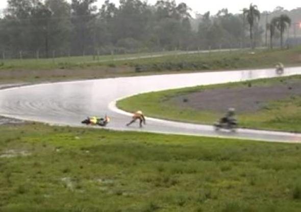 Είναι συχνό το φαινόμενο των ποδοσφαιριστών που… βουτάνε στη μικρή περιοχή, για να δώσει το πέναλτι ο διαιτητής. Ε, εδώ έχουμε να κάνουμε με το ίδιο φαινόμενο, αλλά σε αγώνα μοτοσυκλετών! Ο Βραζιλιάνος αναβάτης, σε μία στροφή της πίστας, σε αγώνα 250 κ. εκ. της χώρας του, γλίστρησε και έπεσε από τη μηχανή, χωρίς να πάθει το παραμικρό. Όταν είδε όμως ότι δεν μπορεί να βάλει ξανά μπροστά τη μοτοσυκλέτα, έκανε τον λιπόθυμο, για να σταματήσει ο αγώνας! Ο αθεόφοβος δεν κατάλαβε όμως, ότι το σκηνικό είχε καταγραφεί από τις κάμερες και έτσι …έφαγε έναν αποκλεισμό από το πρωτάθλημα. Δείτε όλο το περιστατικό στο βίντεο που ακολουθεί: enikos