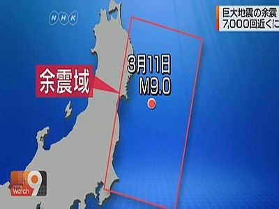 Η Μετεωρολογική Υπηρεσία της Ιαπωνίας ανακοίνωσε την Τετάρτη πως ο καταστροφικός σεισμός των 9 βαθμών της κλίμακας ρίχτερ (8,9 σύμφωνα με εκτίμηση του Αμερικανικού Γεωφυσικού Ινστιτούτου) που είχε σημειωθεί στις 11 Μαρτίου, προκαλώντας τεράστιες καταστροφές στις βορειοανατολικές ακτές της χώρας, είχε ακολουθηθεί από περίπου 7.000 ισχυρούς μετασεισμούς, μετέδωσε το ιαπωνικό κρατικό κανάλι NHK.