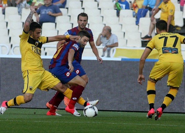 Οι κιτρινόμαυροι δέχτηκαν ακόμη ένα γκολ από στημένη φάση, με τον Βενέτη να ανοίγει το σκορ στο ΟΑΚΑ για την Κέρκυρα στο 30', με ανάποδη κεφαλιά. Από τα ριπλέι της φάσης ο σκόρερ της νησιώτικης ομάδας φαίνεται να ξεκινάει την προσπάθειά του από ελεγχόμενη θέση οφσάιντ.Η ΑΕΚ είχε την συντριπτική υπεροχή, μην αφήνοντας την Κέρκυρα να απειλήσει.