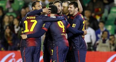 Με εντυπωσιακό τρόπο έκανε… ποδαρικό στο 2013 η Μπαρτσελόνα, συντρίβοντας με σκορ 4-0 την Εσπανιόλ, στο ντέρμπι της Καταλονίας για τη 18η αγωνιστική της Primera Division. Μόλις 29 λεπτά χρειάστηκαν οι παίκτες του Τίτο Βιλανόβα, ο οποίος επέστρεψε στον πάγκο ύστερα από το πρόβλημα υγείας που τον ταλαιπώρησε πρόσφατα, για να «καθαρίσουν» το ματς, με τα γκολ των Τσάβι (10’), Πέδρο (15’, 27’) και Μέσι (πεν. 29’).