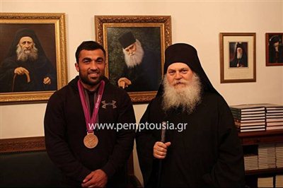 Ο Έλληνας Ολυμπιονίκης είχε κάνει τάμα να κατακτήσει μετάλλιο στο Λονδίνο και φρόντισε να το εκπληρώσει δίνοντας το χάλκινο μετάλλιο που πήρε στους τελευταίους Αγώνες, στην Ιερά Μονή Βατοπαιδίου.