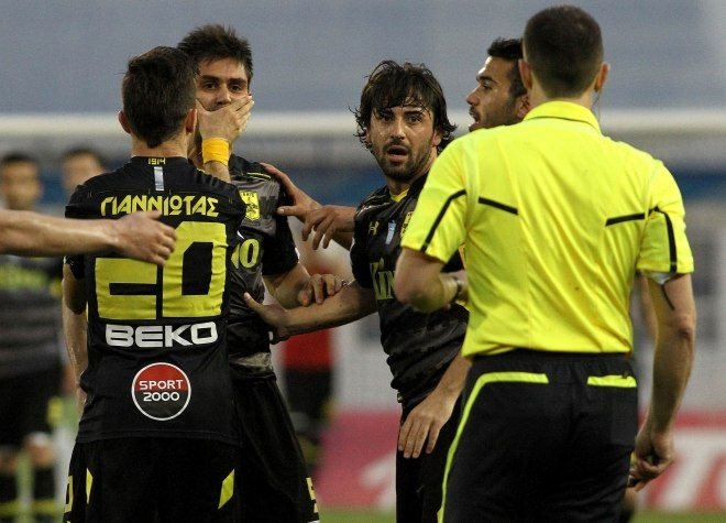 Στον πάγκο: Βελλίδης, Σουνάς, Καραγιάννης, Τσουκάνης.
