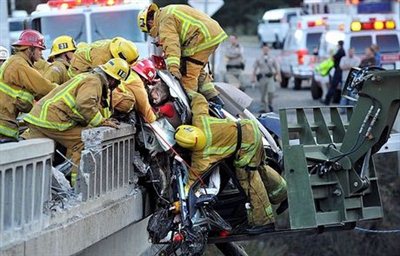 Μια μητέρα και οι δύο κόρες της βρέθηκαν εγκλωβισμένες στο αυτοκίνητό τους κυριολεκτικά πάνω από το χείλος του γκρεμού σε αυτοκινητόδρομο στην Καλιφόρνια. Η 36χρονη Kelli Groves οδηγούσε το αυτοκίνητό της στον αυτοκινητόδρομο 101 στη νότια Καλιφόρνια όταν ξαφνικά η BMW της χτυπήθηκε από φορτηγό, το οποίο είχε ήδη βγει εκτός τροχιάς καταλήγοντας στο κενό.