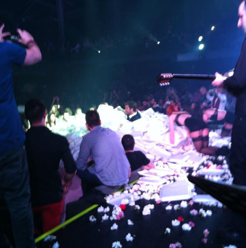 Το περασμένο σαββατοκύριακο ξεκίνησαν οι εμφανίσεις του Γιώργου Μαζωνάκη στη Θεσσαλονίκη και το κοινό της συμπρωτεύουσας του επεφύλασσε την καλύτερη και πιο θερμή και… λουλουδάτη υποδοχή! Η πρεμιέρα του στην "Πύλη Αξιού" με την Κατερίνα Στανίση έγινε το βράδυ της Παρασκευής 5 Απριλίου, ενώ και το Σάββατο 6 Απριλίου δεν έπεφτε καρφίτσα όχι μόνο μέσα στο νυχτερινό κέντρο αλλά και πάνω στην πίστα. Ακόμα και από το πρώτο πρόγραμμα του, ξεκίνησε ο λουλουδοπόλεμος με αποτέλεσμα λίγο μετά τις δύο τα ξημερώματα ο τραγουδιστής να έχει σκεπαστεί από ένα "βουνό" λουλουδιών. Μάλιστα, οι εργαζόμενοι του νυχτερινού κέντρου καθάριζαν πάνω από 10 λεπτά την πίστα, προτού εμφανιστεί η Κατερίνα Στανίση.