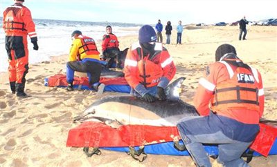 Μια μεγάλη επιχείρηση διάσωσης ενός κοπαδιού κοινών δελφινιών που ξεβράστηκαν σε ακτή της Μασαχουσέτη στήθηκε τις προηγούμενες ημέρες από τα μέλη της διεθνούς Μη Κυβερνητικής Οργάνωσης IFAW, που δραστηριοποιείται για την προστασία των άγριων και εξημερωμένων ζώων σε όλον τον κόσμο.