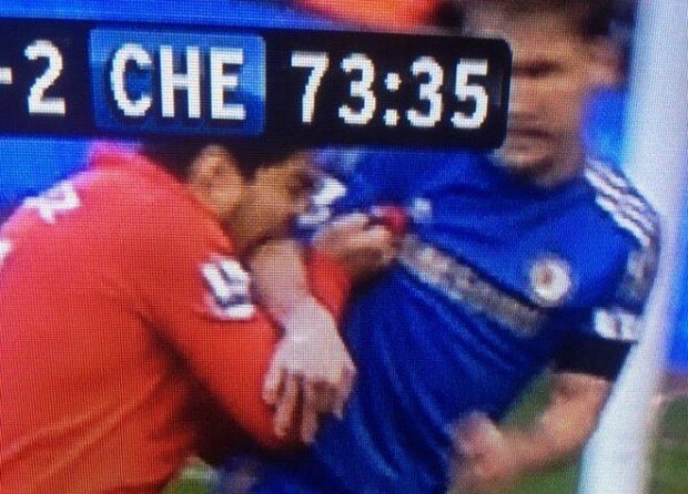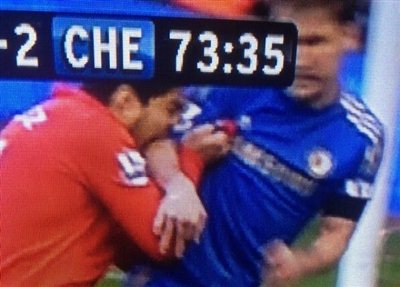 Απίστευτο αυτό που έκανε ο Λουίς Σουάρες στο μεγάλο ματς της Λίβερπουλ με την Τσέλσι (2-2) στο «Άνφιλντ», με τον Ουρουγουανό κυριολεκτικά να δαγκώνει τον Μπράνισλαβ Ιβάνοβιτς! Ο Ουρουγουανός άσος τη στιγμή που προσπαθούσε να πάρει θέση μέσα στην περιοχή, με τον Σέρβο να τον μαρκάρει, έπιασε το χέρι του Ιβανοβιτς και το δάγκωσε... Αν η Ομοσπονδία της Αγγλίας καλέσει τον Σουάρες σε απολογία τότε σύμφωνα με το pamesports, κινδυνεύει με βαριά τιμωρία... Δείτε το χαρακτηριστικό βίντεο