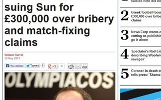 Όπως υποστηρίζει η pressgazette.co.uk ο πρόεδρος του Ολυμπιακού ζητά αποζημίωση 300.000 λιρών από την βρετανική σκανδαλοθηρική εφημερίδα, η οποία τον κατηγόρησε σε δημοσίευμα της για στήσιμο αγώνων.