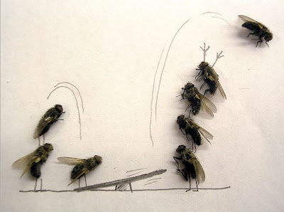 1. Σκοτώνεις μερικές μύγες.. 2. Τις απλώνεις να στεγνώσουν στο καλοριφέρ. 3. Όταν στεγνώσουν, παίρνεις χαρτί και μολύβι και αφήνεις την φαντασία σου ελεύθερη να παίξει...