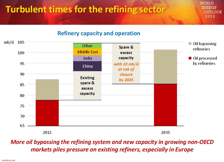 Τότε θα σημάνει και πάλι η ώρα της Μέσης Ανατολής, μόνης μεγάλης πηγής πετρελαίου χαμηλού κόστους, αλλά όπως επεσήμανε ο επικεφαλής οικονομολόγος της ΙΕΑ Fatih Birol, η “στάση αναμονής” που θα κυριαρχεί μεταξύ των χωρών του Περσικού Κόλπου στην ενδιάμεση περίοδο, συνεπάγεται υποχώρηση των επενδύσεων στον πετρελαϊκό τομέα. Εν τω μεταξύ, η σχετική υποχώρηση της ζήτησης στην Ευρώπη, θα σημάνει μείωση της δυνατότητας διύλισης κατά 10% σε σχέση με τα τωρινά επίπεδα.