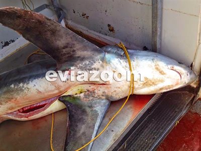 Δεν πίστευαν στα μάτια τους οι ψαράδες στο Κάραβο Αλιβερίου, όταν είδαν ότι η ψαριά τους αποτελείτο από ένα ένα τεράστιο σκυλόψαρο μήκους 3,5 μέρων...Ήταν πρωινές ώρες της Δευτέρας 21 Ιουλίου, όταν οι ψαράδες της περιοχής έβγαλαν από την θάλασσα ένα σκυλόψαρο γνωστό ως «αλεπού της θάλασσας» που είχε μήκος 3,5 μέτρα και βάρος περίπου 180 κιλά. Όπως ήταν φυσικό, στο σημείο έσπευσαν μικροί και μεγάλοι για να φωτογραφίσουν το εντυπωσιακό ψάρι.