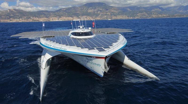 Στο λιμάνι της Κορίνθου έδεσε την Πέμπτη το μεγαλύτερο Catamaran στον κόσμο, που κινείται αποκλειστικά με ηλιακή ενέργεια.