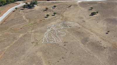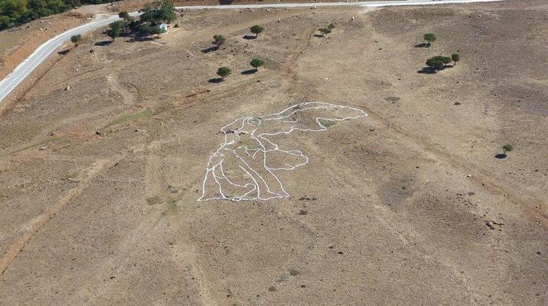 Στην πλαγιά που βρίσκεται δίπλα στο Υδραγωγείο της Παλαιόπολης, στο δρόμο προς τη Χώρα της Σαμοθράκης, ένα περίγραμμα του επιβλητικού αγάλματος της Νίκης της Σαμοθράκης, φτιαγμένο με πέτρες, έχει κάνει την εμφάνισή του, με αφορμή τη συμπλήρωση 150 χρόνων από την τοποθέτησή του στο μουσείο του Λούβρου.