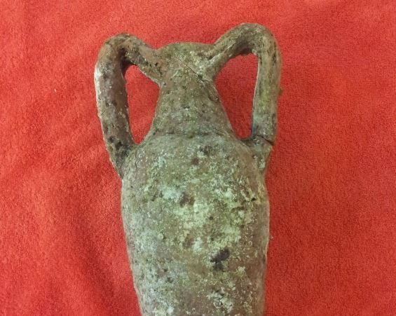 Επρόκειτο για ένα ζευγάρι Γερμανών, ηλικίας 34 και 33 ετών, που είχαν τοποθετήσει το αρχαίο αντικείμενο ανυπολόγιστης αξίας στις αποσκευές τους. Ο οξυπύθμενος αμφορίσκος έχει ύψος 32,5 εκατοστά, ενώ στις βαλίτσες οι αστυνομικοί που έκαναν τον έλεγχο εντόπισαν και τμήμα από το λαιμό-λαβή του αντικειμένου που είχε σπάσει. Σύμφωνα με τις πρώτες εκτιμήσεις, ανήκει χρονολογικά στη ρωμαϊκή περίοδο.