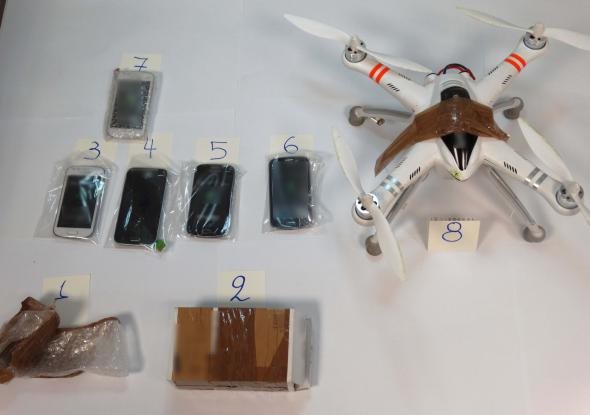 Συγκεκριμένα, σύμφωνα με ανακοίνωση της αστυνομίας, την Παρασκευή το βράδυ, η ιπτάμενη συσκευή έγινε αντιληπτή από έναν φρουρό των φυλακών. Η συσκευή προσέκρουσε στο έδαφος, εξωτερικά της δυτικής πλευράς του Καταστήματος και σε απόσταση 35-40 μέτρων από την περίφραξη.