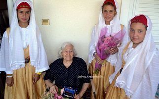 Η Ελένη Β. Κουρή διανύει το 105ο έτος της και χθες δέχθηκε τα μέλη του συλλόγου που της προσέφεραν μια ανθοδέσμη και την τιμητική πλακέτα.