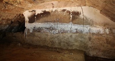 Αριστερά η ύποπτη οπή απ' όπου μπορεί να εισήλθαν στον τάφο τυμβωρύχοι