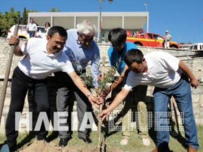 Στο χώρο του δημαρχείου πάντα ακολούθησε ανταλλαγή δώρων μεταξύ των δύο πλευρών, ενώ η σεμνή αυτή τελετή ολοκληρώθηκε στον προαύλιο χώρο του παλιού δημαρχείου, όπου οι κινέζοι δημοσιογράφοι και ο δήμαρχος Αρχαίας Ολυμπίας φύτεψαν συμβολικά μια ελιά. Ο κ. Κοτζιάς παραχώρησε συνέντευξη στους κινέζους δημοσιογράφους όπου έφτασαν στην Ολυμπία και με όχημα βαν αποστολής δορυφορικού σήματος.