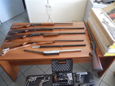 - κορμός περιστρόφου & κορμός κυνηγετικού όπλου, από τα οποία είχαν αφαιρεθεί όλα τα εξαρτήματά τους,