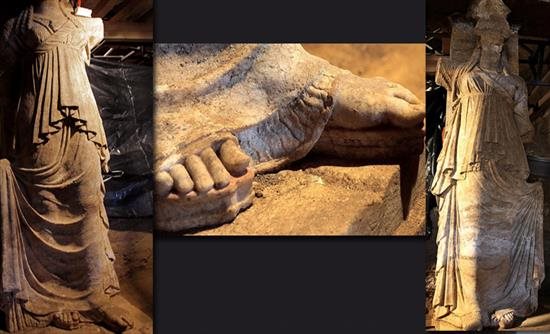 Όχι, δεν είναι τα δάκτυλα, αυτά μπορεί να μπερδέψουν ακόμη περισσότερο την κατάσταση. Ναι, και οι δυο έχουν το λεγόμενο ελληνικό πόδι. Το δεύτερο δάχτυλο του ποδιού τους είναι μεγαλύτερο από το πρώτο και τα υπόλοιπα ακολουθούν όντας το ένα μικρότερο από το άλλο μέχρι το τελευταίο. Αυτό το σχήμα ποδιού με τα δάκτυλα υπό κάποια γωνία ονομάζεται και ελληνικό πόδι. Ακολουθήθηκε σχεδόν ευλαβικά στην κατασκευή αγαλμάτων στην κλασική εποχή, αλλά και στην ελληνιστική, το ίδιο συνέβη όμως συνέβη και κατά τη ρωμαϊκή περίοδο. Επί αιώνες λοιπόν έτσι κατασκευάζονταν τα αγάλματα και κάπως έτσι αυτό το στοιχείο δεν βοηθάει.Αντίθετα τα βάθρα των δυο αγαλμάτων μπορούν να δείξουν πολλά.Αν τα βάθρα αποδειχθεί πως είναι αναπόσπαστο μέρος του τάφου, είναι κατασκευασμένα από το ίδιο υλικό και έχουν τοποθετηθεί στην φάση κατασκευής του μνημείου, τότε σημαίνει ότι τα αγάλματα είχαν προϋπολογιστεί να μπουν εκεί από την αρχή και από τη στιγμή που το υπόλοιπο μνημείο έχει χρονολογηθεί στο τελευταίο τέταρτο του 4ου π.Χ. αιώνα έτσι και τα αγάλματα δεν μπορεί να είναι τοποθετημένα μεταγενέστερα στον τάφο.Με βεβαιότητα όμως οι αρχαιολόγοι θα μπορέσουν να μιλήσουν ότι αποκαλύψουν τα κτερίσματα του νεκρού. Αγγεία, νομίσματα ή άλλες ανθρώπινες κατασκευές που να παραπέμπουν σε συγκεκριμένη περίοδο.Αυτά συνήθως βρίσκονται στον κυρίως χώρο του τάφου, στον προθάλαμο και τον νεκρικό θάλαμο δηλαδή, όπου ακόμη οι αρχαιολόγοι δεν έχουν φτάσει.Τώρα οι επιστήμονες που μετέχουν στην ανασκαφή ωστόσο δηλώνουν βέβαιοι ότι οι θησαυροί του τάφου είναι εκεί και τους περιμένουν, ότι κανείς δεν μπόρεσε να φτάσει πριν από αυτούς.