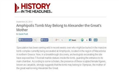 Στα ευρήματα και την πορεία των ανασκαφών στην Αμφίπολη αναφέρεται σε δημοσίευμα του το History Channel.
