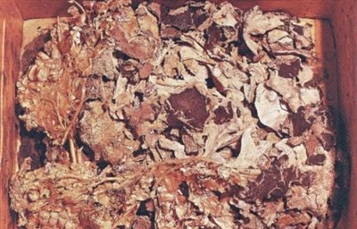 Τα θραύσματα από τη μάσκα που φορούσε εν ζωή και γι αυτό ως ένδειξη τιμής την έβαλαν στο πρόσωπο του Μακεδόνα βασιλιά πριν την καύση, παρουσίασε σήμερα η διεπιστημονική Ομάδα της Πανεπιστημιακής Ανασκαφής της Βεργίνας. Το νέο σημαντικό εύρημα έφεραν στο "φως" οι αρχαιολόγοι στις Αιγές συγκεκριμένα στον τάφο ΙΙ και πρόκειται για τη μάσκα που φορούσε ο βασιλιάς των Μακεδόνων ως αρχιερέας των ορφικών μυστηρίων. Η διεπιστημονική Ομάδα της Πανεπιστημιακής Ανασκαφής της Βεργίνας παρουσίασε το νέο εύρημα, μαζί με άλλα στοιχεία από τετραετή έρευνα στο υλικό του τάφου, στο Αρχαιολογικό Μουσείο Θεσσαλονίκης. Εκτός από τα θραύσματα από τη μάσκα που φορούσε ο βασιλιάς των Μακεδόνων Φίλιππος Β΄, παρουσιάστηκαν ίχνη χουντίτη και πορφύρας στα 350 οστά και θραύσματα οστών στις δύο χρυσές λάρνακες που επιβεβαιώνουν τη θεωρία ότι ο νεκρός έφερε στο πρόσωπο μια επιμελημένη κατασκευή, την οποία φορούσε εν ζωή και ως ένδειξη τιμής και αναγνώρισης της προσφοράς του, την έβαλαν στο πρόσωπό του πριν από την καύση. Δείτε τις φωτογραφίες:
